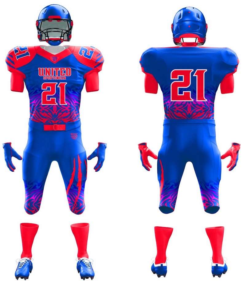 ชุดยูนิฟอร์มอเมริกันฟุตบอล เสื้อและกางเกงแบบสั่งทำ ผ้าสำหรับกีฬาแบบซับลิเมชั่น ผลิตโดยโรงงาน OEM ODM รับผลิตแบรนด์ส่วนตัว