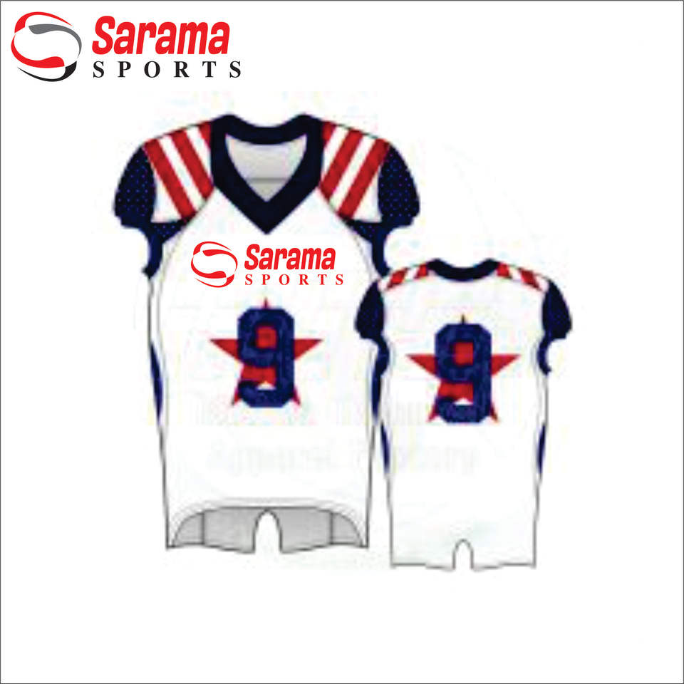 อเมริกันฟุตบอลชุดทำในปากีสถานการฝึกอบรมระเหิดพิมพ์ผ้าโพลีเอสเตอร์100%