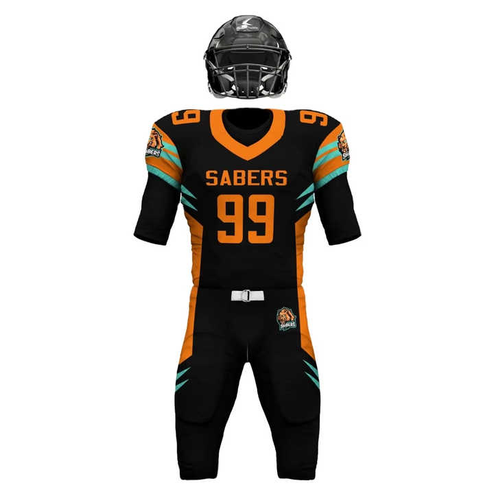 ชุดกีฬาอเมริกันฟุตบอลแบบซับลิเมชั่น สกรีนโลโก้ ชื่อทีม ชุดแข่งขันแบบสั้น แห้งเร็ว ระบายอากาศได้ดี ชุดเสื้อเจอร์ซีย์สำหรับการเล่นแทคเคิล
