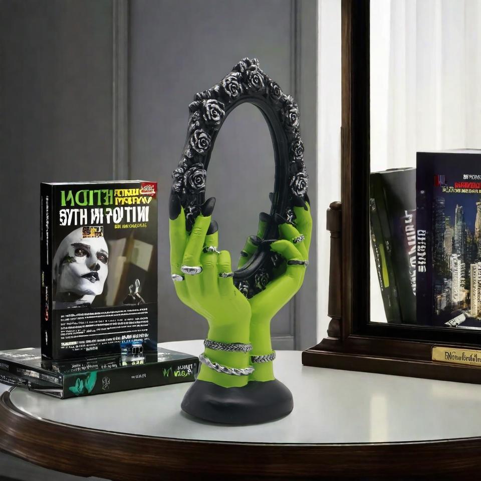 กระจกวิเศษรูปผีสำหรับวันฮาโลวีนแนวอเมริกันศิลปะพื้นบ้านงานสร้างสรรค์ศิลปะแกะสลักบนโต๊ะเครื่องประดับแบบมีปุ่มเรซินอีพ็อกซี่