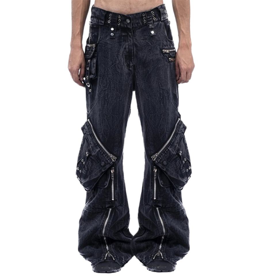 กางเกงคาร์โก้สไตล์อเมริกันเทรนดี้ Y2K หลายกระเป๋า ซิป คอลเลคชั่นใหม่ ฤดูใบไม้ผลิ ฤดูใบไม้ร่วง ทรงตรง ขากว้าง