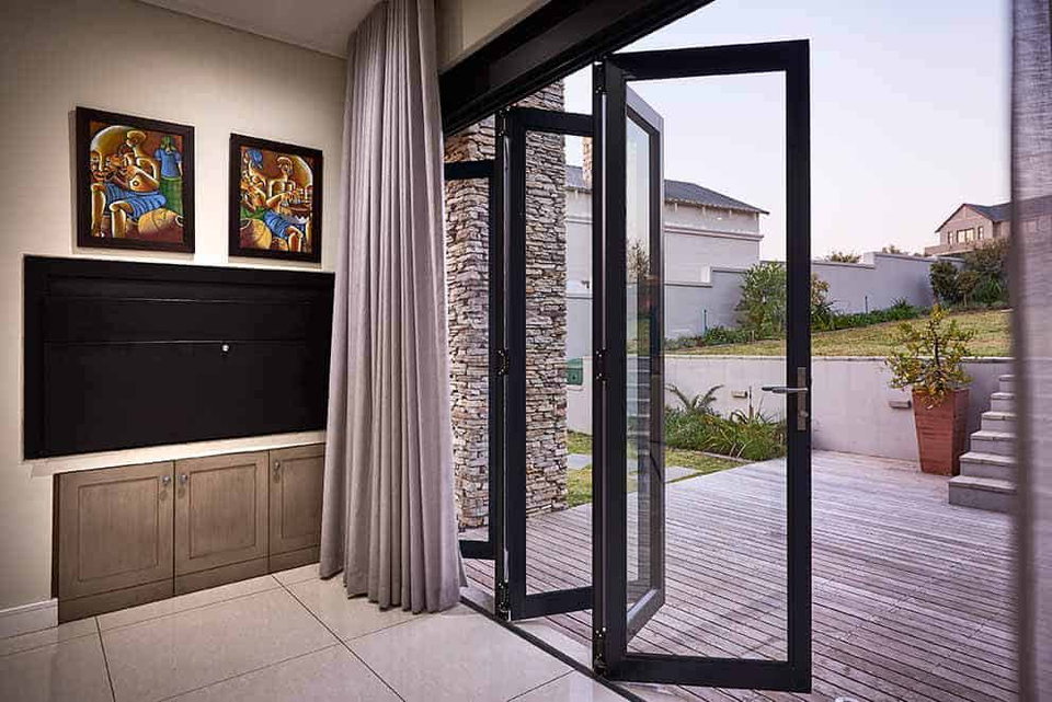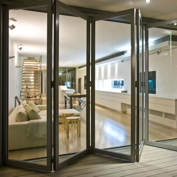 ประตูบานเลื่อนอะลูมิเนียมแบบโมเดิร์นของอเมริกัน ได้มาตรฐาน NFRC พร้อมฉนวนกันความร้อน แบบพับได้ สำหรับภายในบ้าน ห้องนอน ห้องน้ำ ป้องกันพายุเฮอริเคน