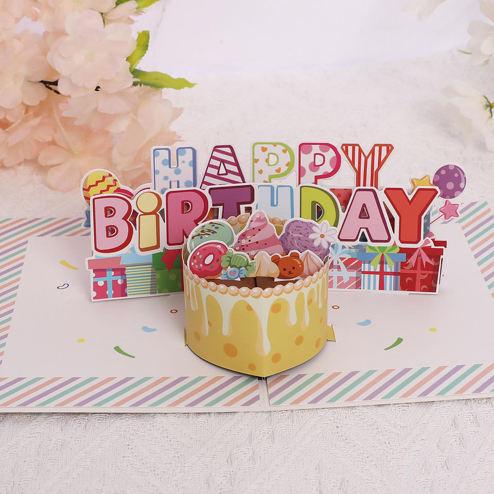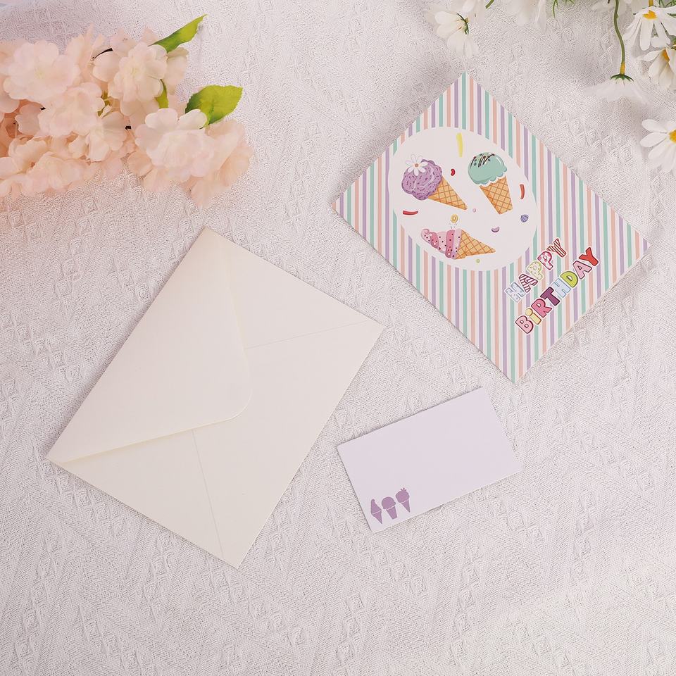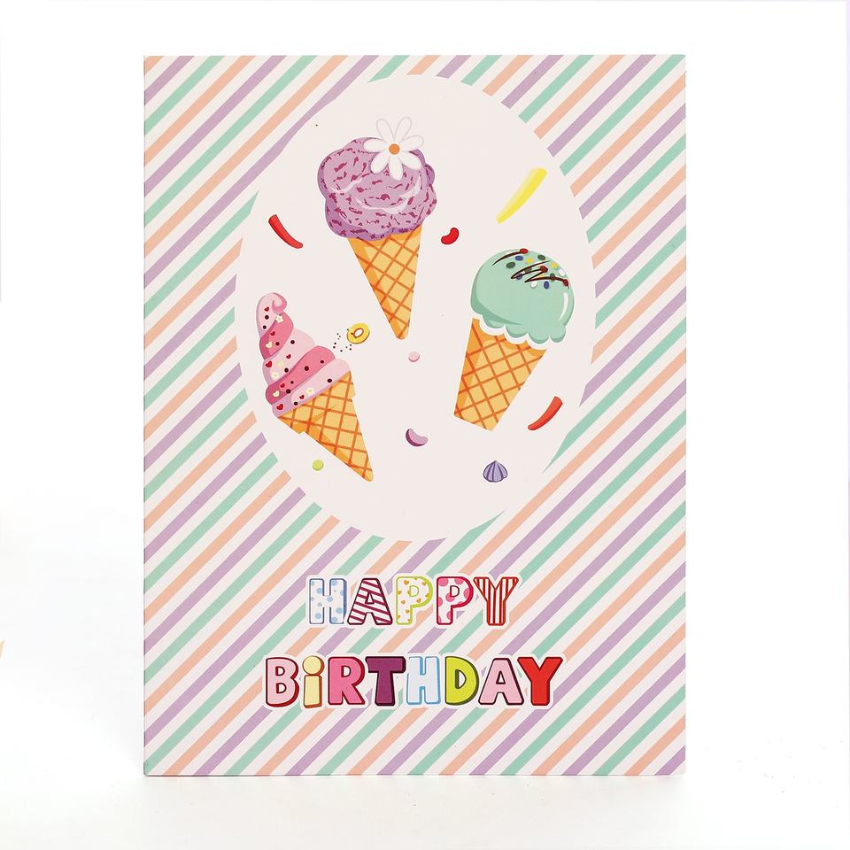 การ์ดอวยพรป๊อปอัพ3D ไอศกรีมอเมริกันโปสการ์ดวันเกิดรูปการ์ตูนน่ารักวัสดุกระดาษสไตล์เพลงวันวาเลนไทน์