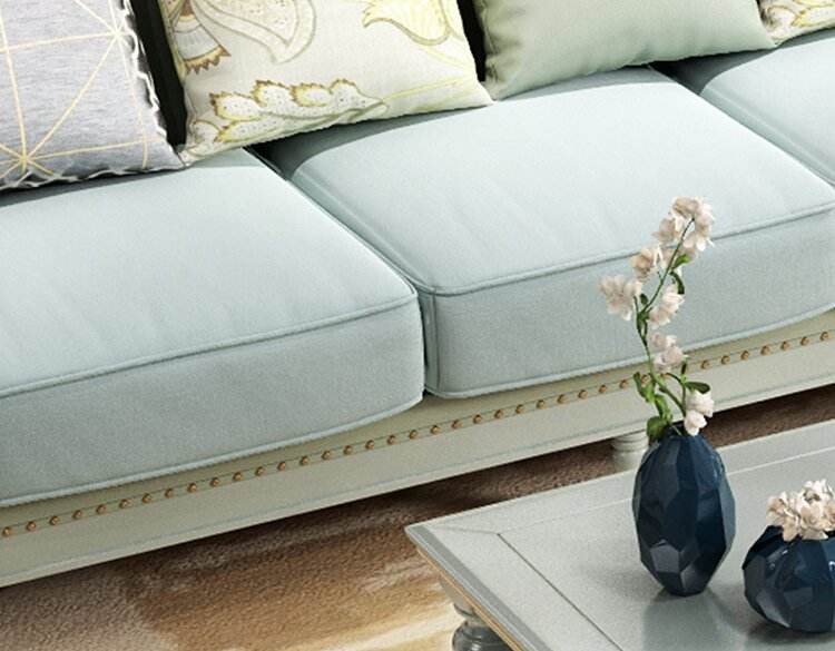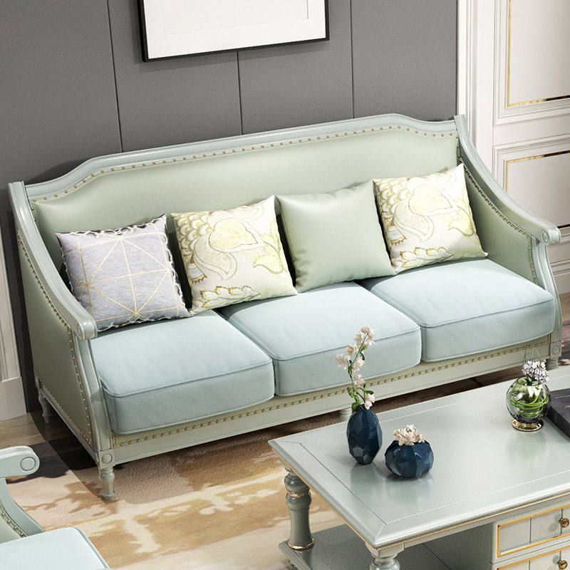 โซฟาไม้จริงหรูหราเบาสไตล์อเมริกันห้องนั่งเล่นวิลล่าขนาดใหญ่โซฟายุโรปรูปตัวยูแบบเรียบง่ายทันสมัย