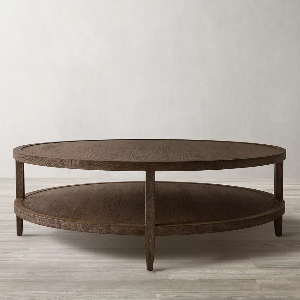 โต๊ะกาแฟไม้กลมสไตล์วินเทจสำหรับห้องนั่งเล่น ทำจากไม้รีเคลมพร้อมพื้นที่เก็บของ