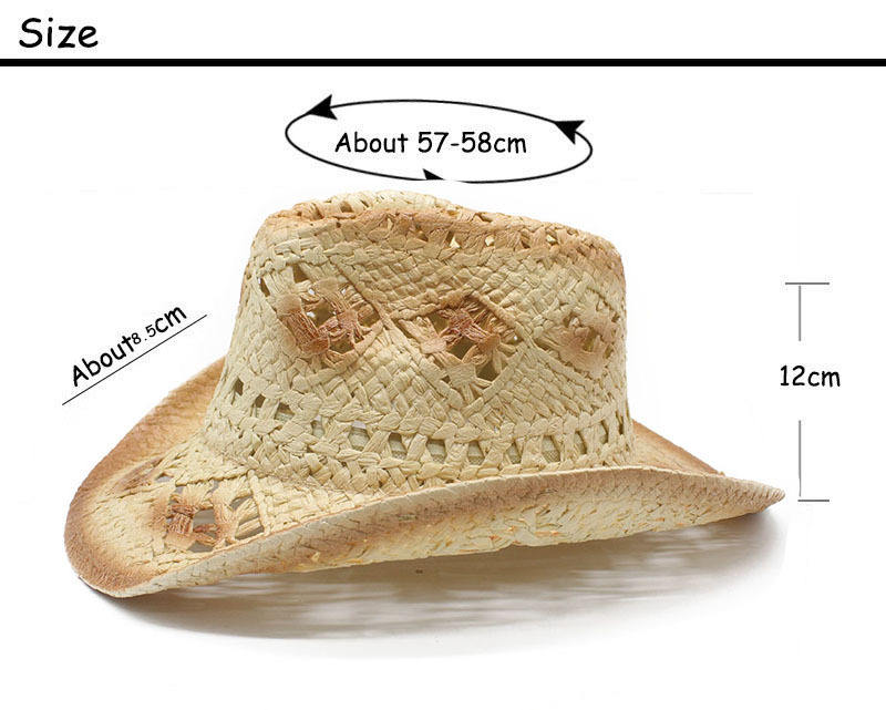 หมวกคาวบอยแบบย้อนยุคหมวกชายหาดกันแดดแบบถักด้วยมือดีไซน์แบบกลวงสำหรับเดินทางกลางแจ้งแบบอเมริกัน