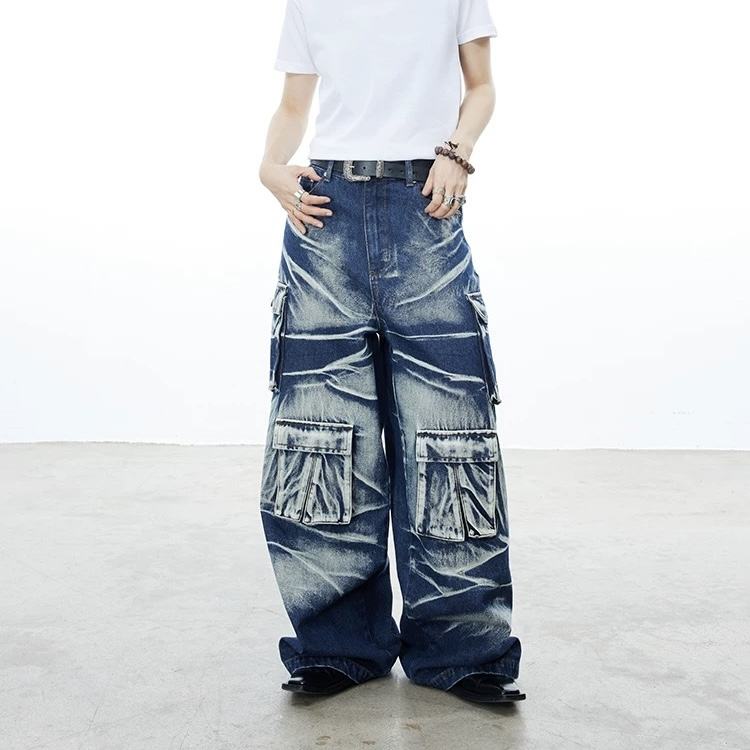 กางเกงยีนส์ผู้ชายแบบมีกระเป๋า3D ย้อนยุคกางเกงยีนส์ผ้าฝ้ายผลิตตามสั่งแบบอเมริกัน