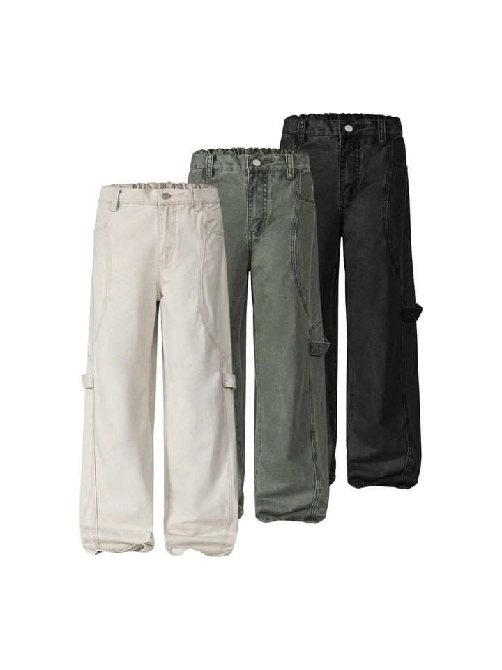 กางเกงยีนส์สไตล์วินเทจแบบอเมริกันย้อนยุคสำหรับผู้ชายและผู้หญิง กางเกงลำลองทรงช่างไม้ แฟชั่นสตรีทแวร์ระดับไฮเอนด์ ทรงหลวม กางเกงสั่งตัด