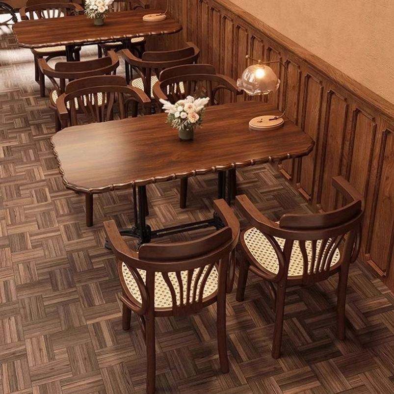 ชุดโต๊ะและเก้าอี้รับประทานอาหารแบบเรียบง่ายสไตล์อเมริกันย้อนยุคเฟอร์นิเจอร์แผงไม้สำหรับกาแฟโรงแรมและร้านอาหาร