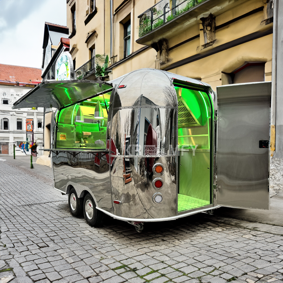 รถพ่วงขายอาหารอเมริกันสแตนดาร์ด ไอศกรีม พิซซ่า ครัวเคลื่อนที่สแตนเลส รถพ่วงขายอาหารพร้อมครัวครบชุด