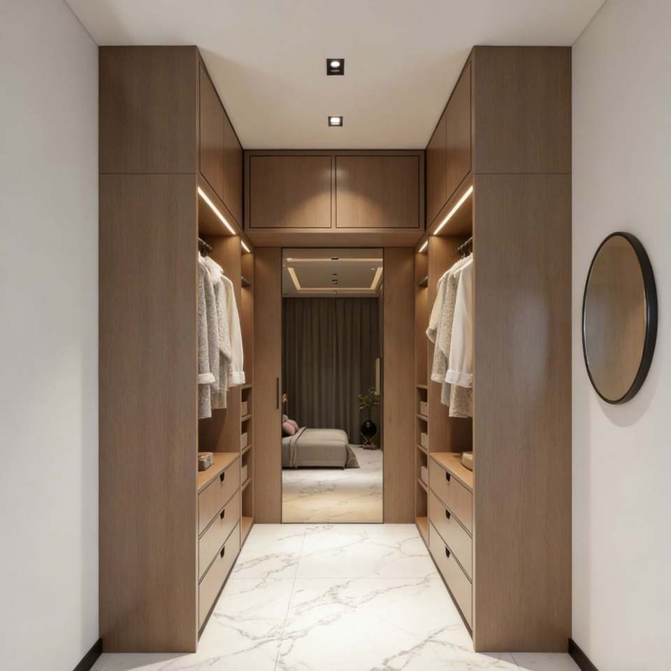ตู้เสื้อผ้าแบบวอล์กอินอเมริกันสแตนดาร์ด โมเดิร์น คัสตอม พร้อมไฟ LED ในตัว จัดเก็บได้หลายโซน เหมาะสำหรับห้องนั่งเล่น