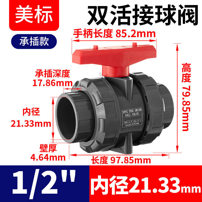 วาล์วบอล UPVC มาตรฐานอเมริกัน SCH80 แบบแมนนวล สวิตช์ PVC แบบ DIN ข้อต่อคู่ สำหรับน้ำ รองรับการปรับแต่ง OEM