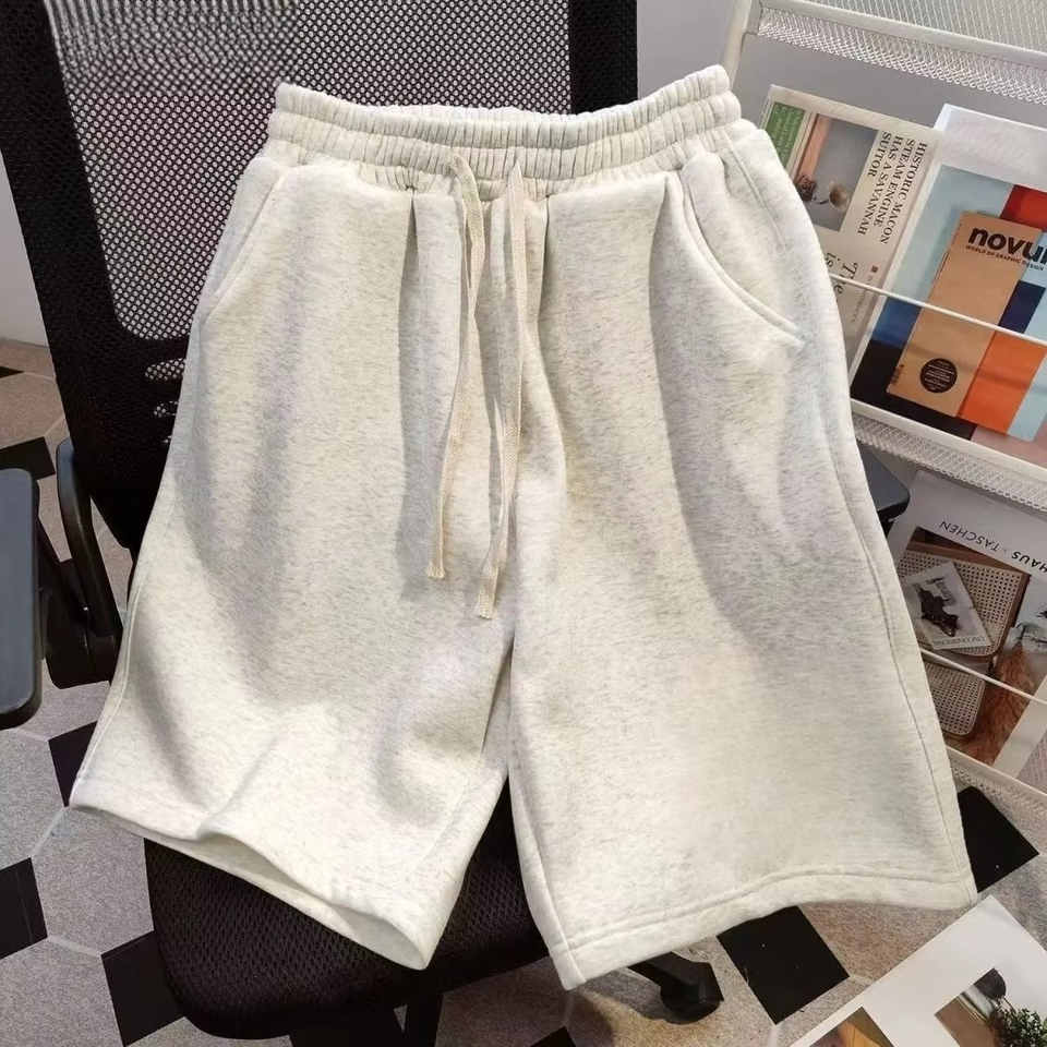 กางเกงขาสั้นทรงตรงเอวกลางสไตล์ลำลองสำหรับผู้ชาย ผ้าขนสัตว์ แนวสตรีทอเมริกัน ทรงหลวม มีเชือกผูก เหมาะสำหรับฤดูร้อน แห้งเร็ว ใส่ได้ทั้งชายและหญิง
