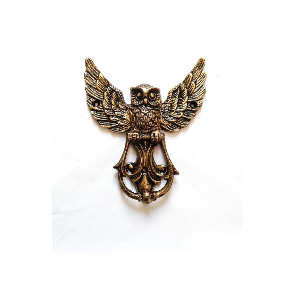 แหวนสลักแบบเคาะประตูรูปนกฮูกโบราณทำจากทองเหลืองโลหะเหล็กแท้100% สไตล์อเมริกัน