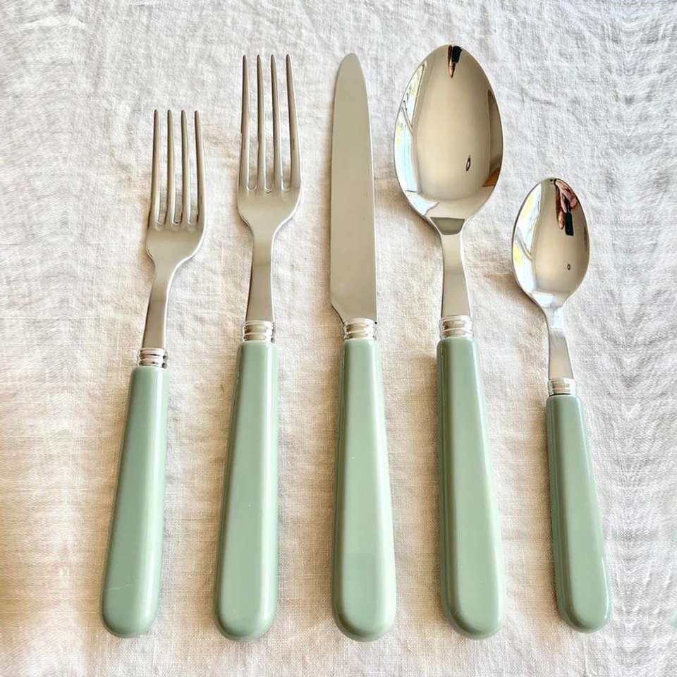 ชุดช้อนส้อมสแตนเลสแบบอเมริกัน5ชิ้นสุดหรูเครื่องใช้บนโต๊ะอาหารงานทำมือเครื่องใช้บนโต๊ะอาหารที่มีเอกลักษณ์เฉพาะชุบเงิน