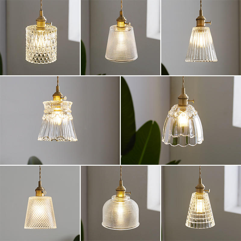 โคมไฟทองเหลืองสไตล์อเมริกันแบบหัวเดียว โคมไฟระย้าแก้วสำหรับห้องพักโรงแรม ห้องนั่งเล่น ผนังตกแต่ง สำหรับติดตั้งข้างโต๊ะ
