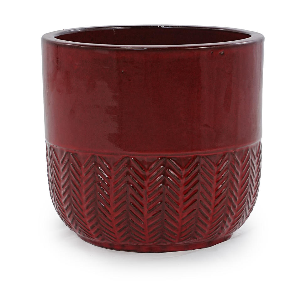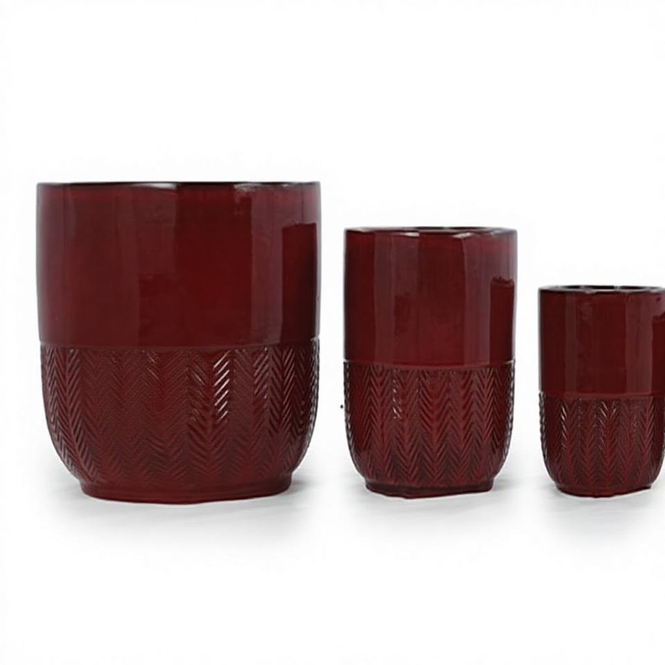กระถางดอกไม้เซรามิกเคลือบสีแดงเบอร์กันดีแบบอเมริกัน ลายก้างปลา มีรูระบายน้ำ เป็นมิตรกับสิ่งแวดล้อม ทนทาน ใช้ปลูกต้นไม้บนพื้น