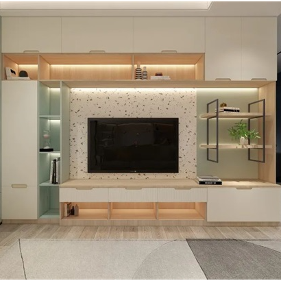 ตู้วางทีวีแบบแผ่นไม้เชอร์รี่สไตล์อเมริกัน ปรับได้และขยายได้ สำหรับใช้ในบ้านหรืออพาร์ตเมนต์