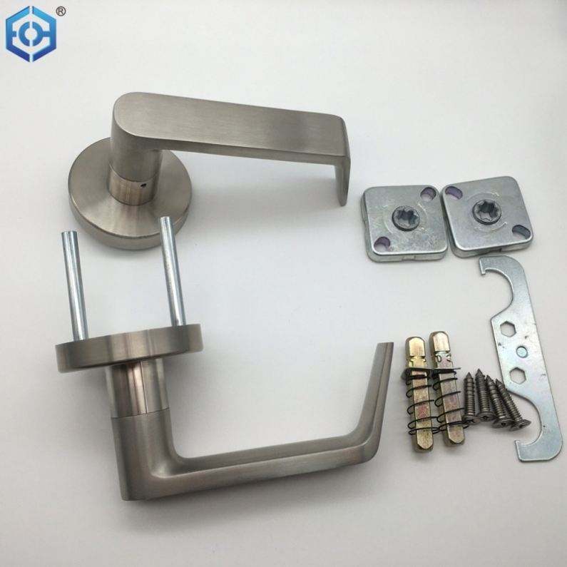 ชุดล๊อคคันโยกแบบกุญแจหนาสำหรับใช้ในครัวเรือนสไตล์อเมริกันวัสดุซาตินชุบโครเมี่ยมสำหรับประตูหน้าสำนักงาน