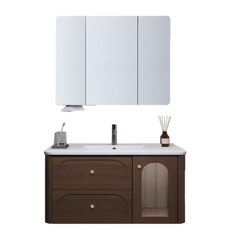 ตู้วางอ่างล้างหน้าแบบแขวนผนังสไตล์อเมริกัน วัสดุไม้แบบเรียบง่ายสำหรับโรงแรม ขนาดเล็ก กันน้ำ พร้อมอ่างล้างหน้า