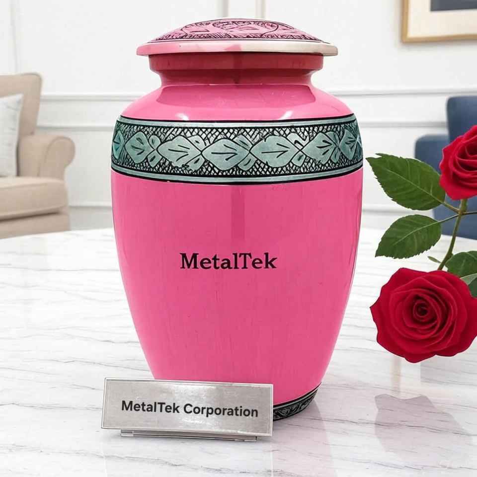 โถโลหะสำหรับฝังศพแบบอเมริกันโกศใส่เถ้ากระดูกสีชมพูสำหรับมนุษย์และสัตว์เลี้ยงอุปกรณ์ตกแต่งงานศพ