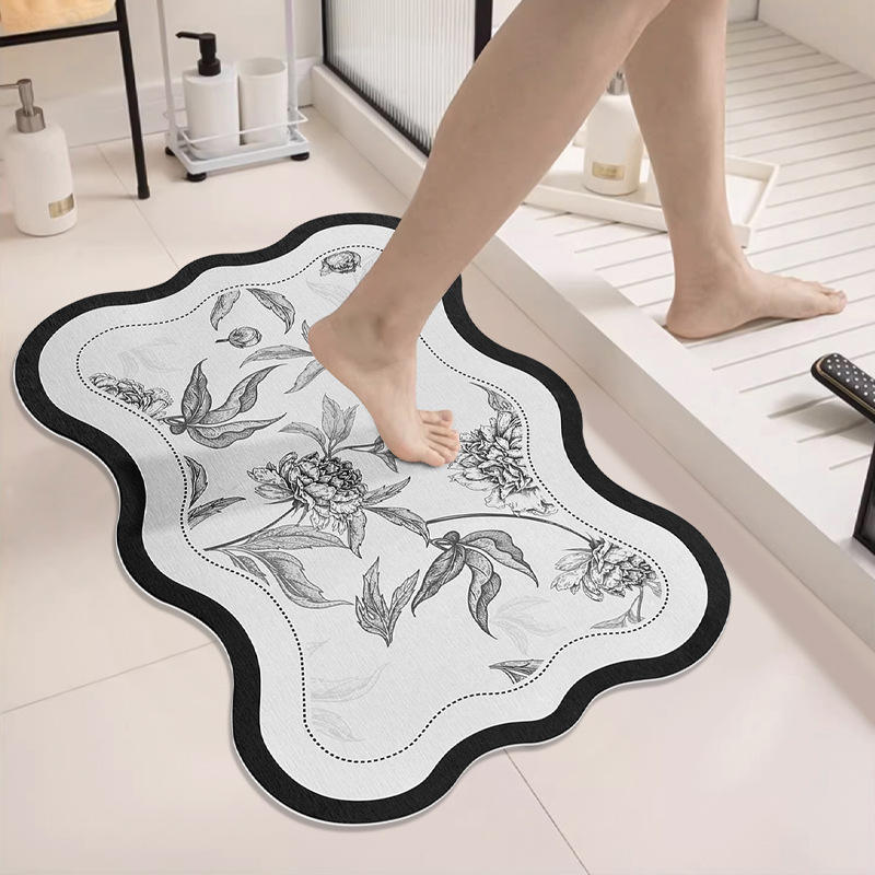 พรมเช็ดเท้าลายดอกไม้สไตล์อเมริกัน สีขาว รูปทรงเอเลี่ยน ทำจากดินไดอะตอม ดูดซับน้ำได้ดี แห้งเร็ว กันลื่น ทำความสะอาดง่าย