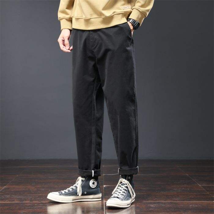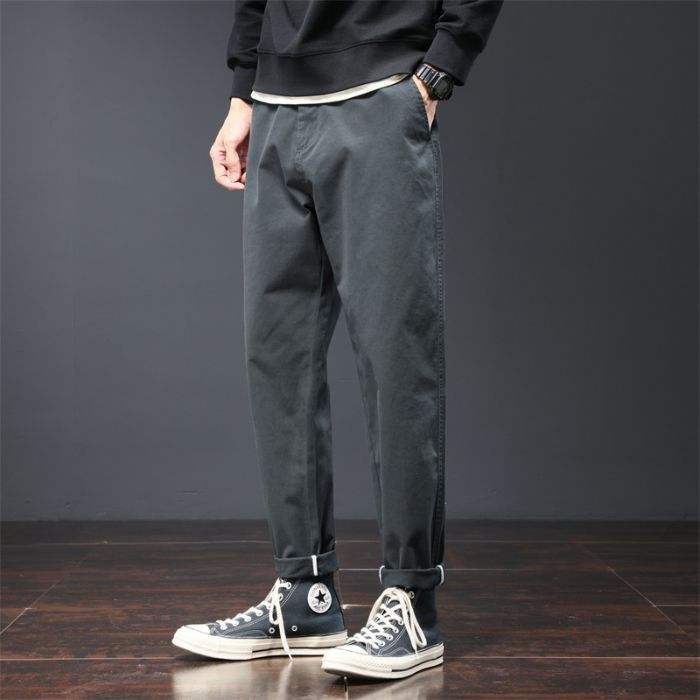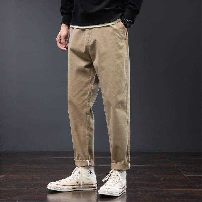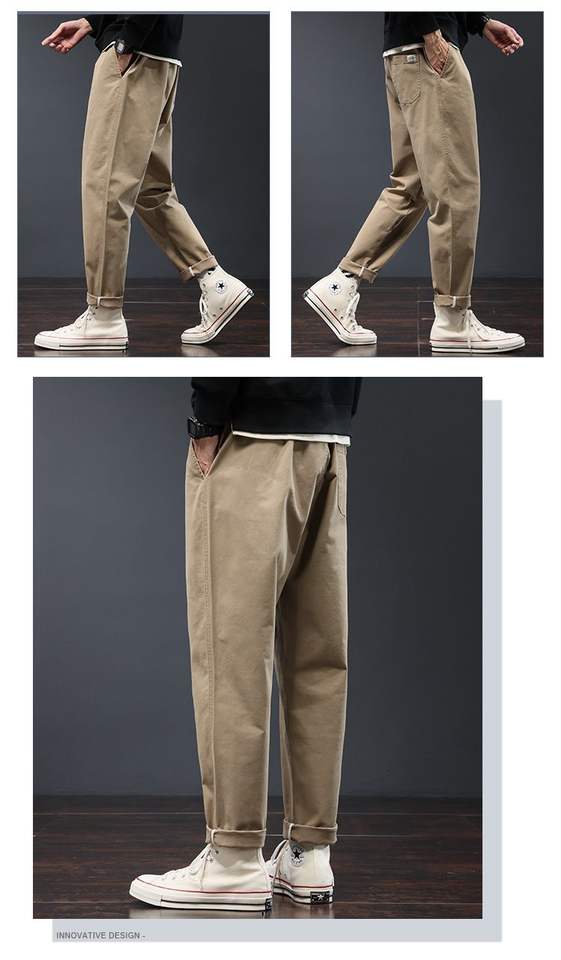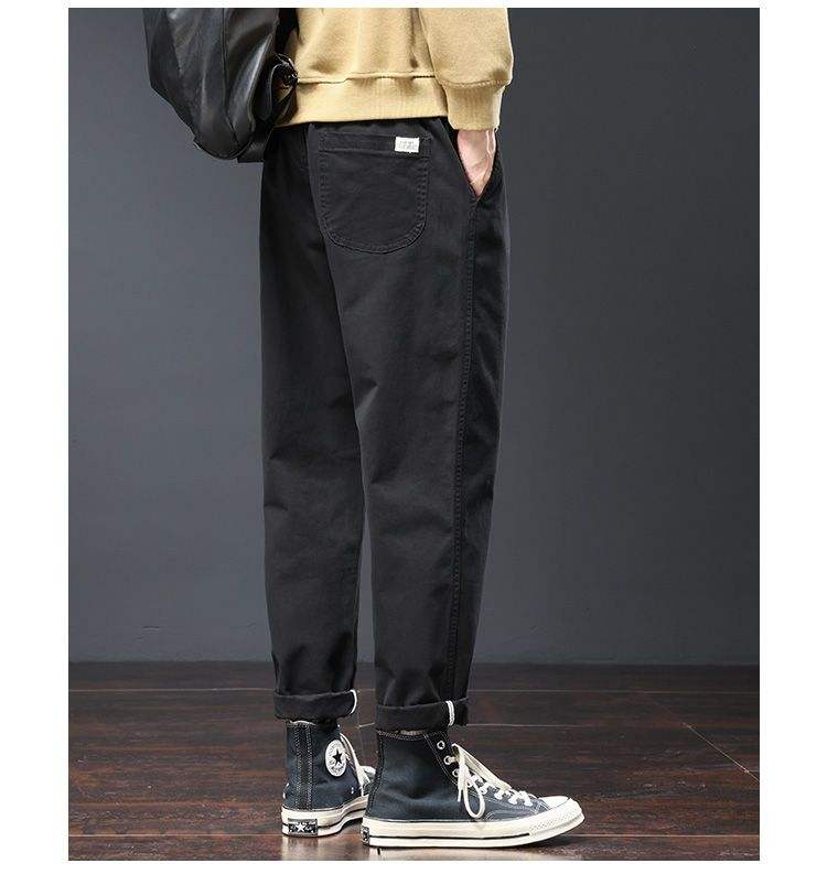 กางเกงทำงานลำลองสไตล์อเมริกันสำหรับผู้ชายกางเกงขากว้างแบบเรียบง่ายทรงหลวมขนแกะ