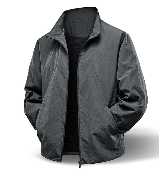 เสื้อแจ็คเก็ตสไตล์อเมริกันสำหรับผู้ชาย แนวเท่ห์ เรียบง่าย เหมาะสำหรับฤดูใบไม้ผลิและฤดูใบไม้ร่วง เสื้อโค้ทบาง ขายส่ง รับสกรีนโลโก้ เสื้อผ้าผู้ชาย