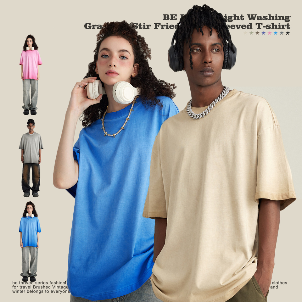 เสื้อยืดแบบไล่ระดับสีสำหรับชายและหญิงเสื้อยืดผ้าฝ้ายแท้สีพื้นแบบกำหนดเอง