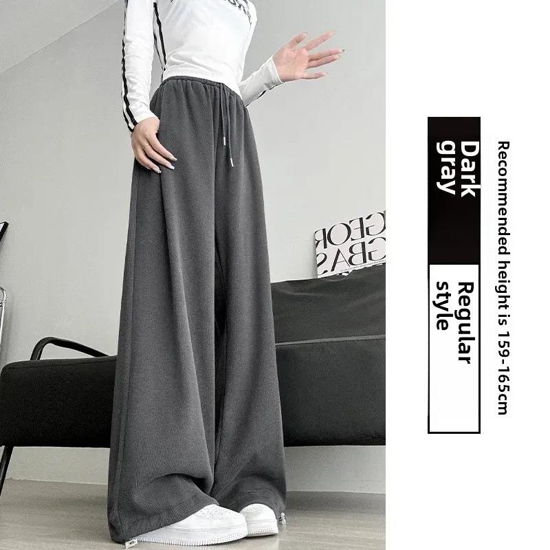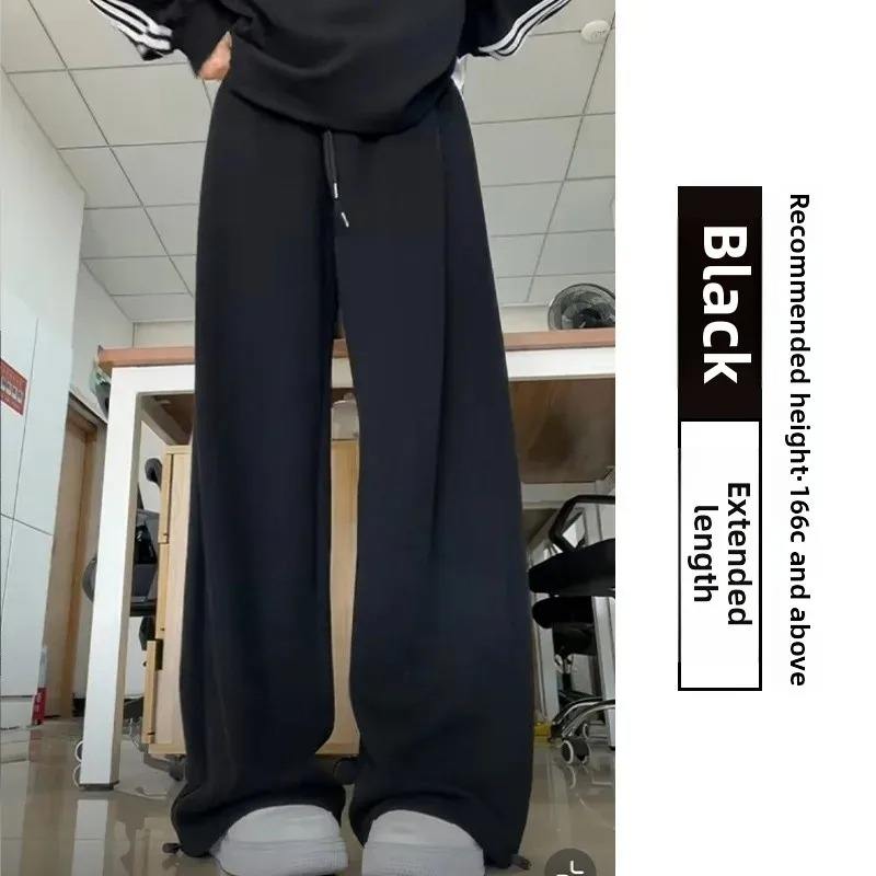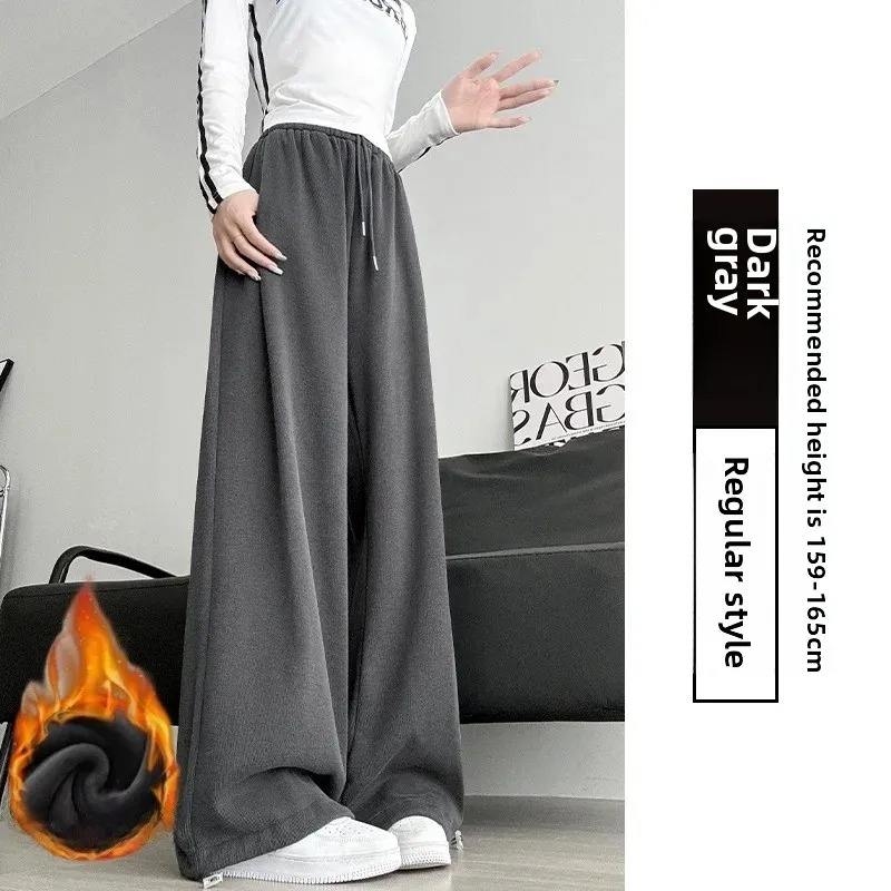 กางเกงกีฬาผู้หญิงสไตล์อเมริกัน ผ้าฟลีซบุขน มีเชือกผูก แห้งเร็ว ระบายอากาศดี ทรงหลวม ขากว้าง ทรงตรง ใส่สบาย เหมาะสำหรับฤดูหนาว