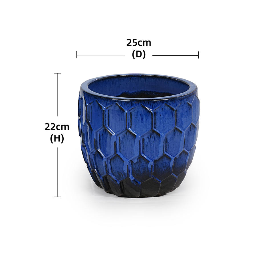 กระถางต้นไม้เซรามิกเคลือบสีน้ำเงินรอยัลไล่เฉดแบบอเมริกันวินเทจ ลายนูนแบบรังผึ้ง เป็นมิตรกับสิ่งแวดล้อม ทนทาน เหมาะสำหรับปลูกดอกไม้ในบ้าน