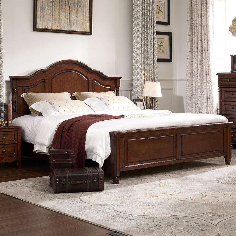 โครงเตียงคิงไซส์สไตล์คันทรีอเมริกัน ทำจากไม้มะฮอกกานีแท้ สำหรับห้องนอน