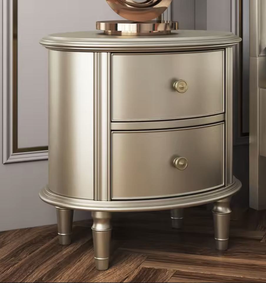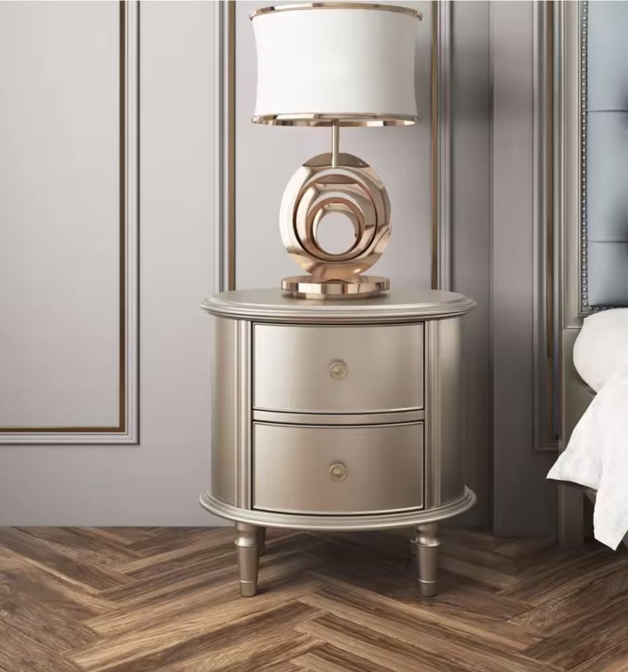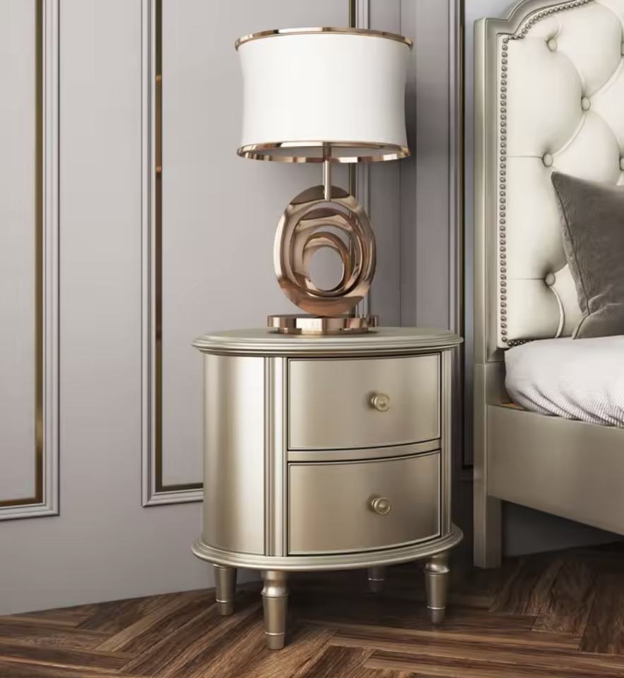 โต๊ะข้างเตียงสไตล์อเมริกันสุดหรู สีทองแชมเปญ ห้องนอนไม้เนื้อแข็งทั้งหลัง ตู้ข้างเตียง ตู้เก็บของชั้นที่สอง