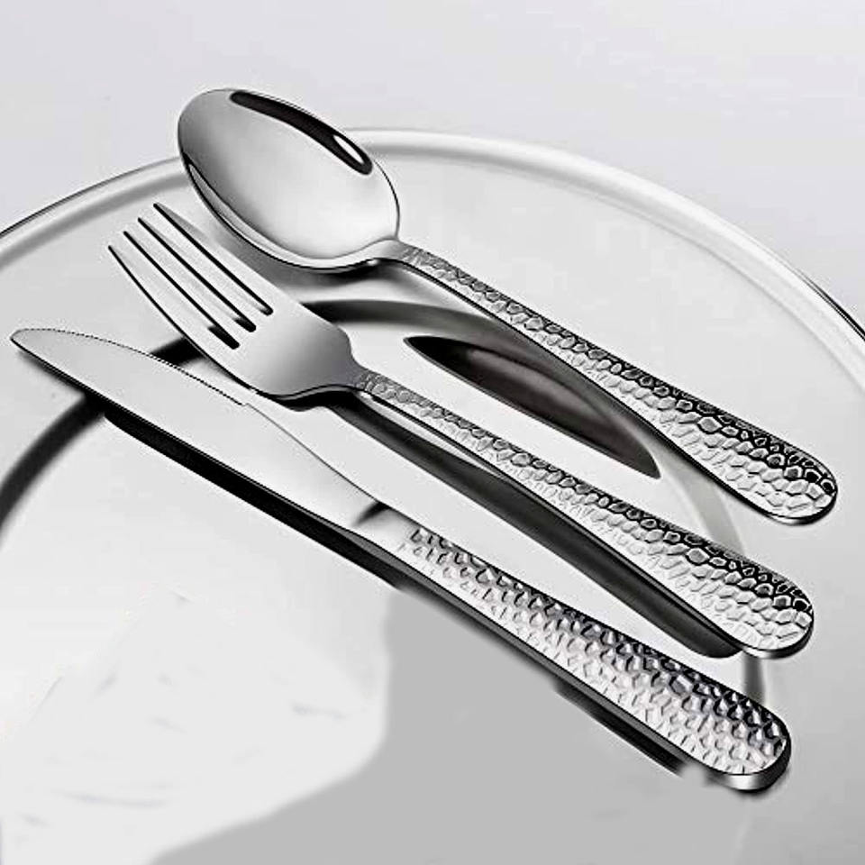 ชุดเครื่องใช้บนโต๊ะอาหารสแตนเลสสีเงินแบบอเมริกันชุดช้อนเงินมีดีไซน์แบบโบราณใช้ค้อนทุบสำหรับร้านอาหาร