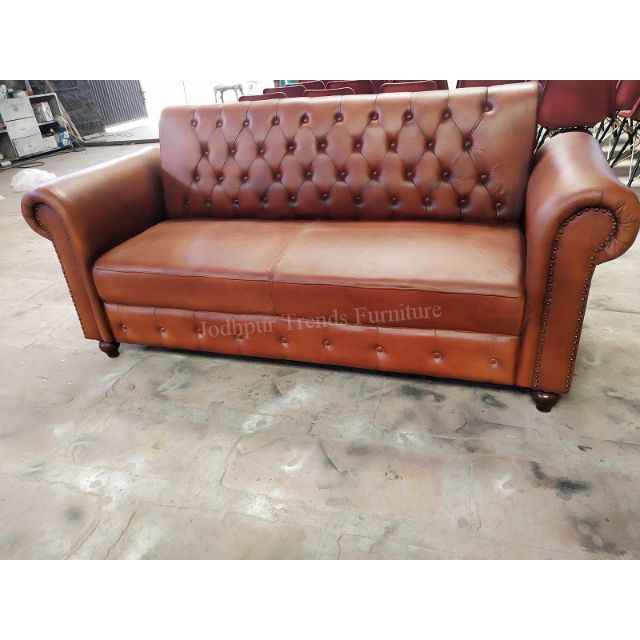 เฟอร์นิเจอร์สไตล์อเมริกันโมเดิร์นเบาะโบราณหนังวินเทจห้องนั่งเล่นเชสเตอร์ฟิลด์โซฟานอนพักผ่อน