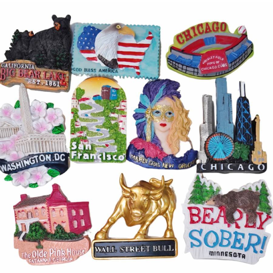 สติกเกอร์ติดตู้เย็นอเมริกัน แม่เหล็กสามมิติ 3D ของที่ระลึกจากการเดินทาง ลาสเวกัส นิวยอร์ก วอชิงตัน ไอเดียของที่ระลึก