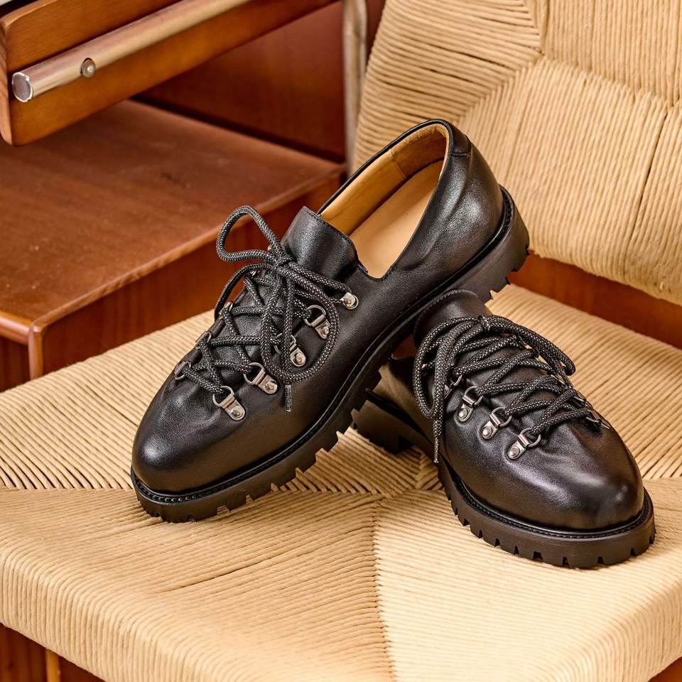 รองเท้าหนังทรงกลมสไตล์เรโทรอเมริกันสำหรับผู้ชาย, รองเท้าเดอร์บี้ลำลองสไตล์อังกฤษสำหรับกิจกรรมกลางแจ้ง