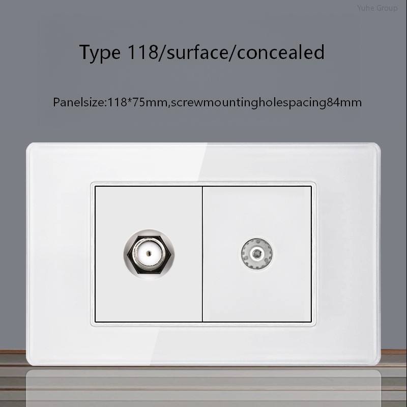 เต้ารับติดผนังแบบ CAT5 สำหรับทีวี ยี่ห้ออเมริกันสแตนดาร์ด ผลิตจากกระจกทนทาน พร้อมอะแดปเตอร์โมดูล RJ45 และพอร์ตคอมพิวเตอร์
