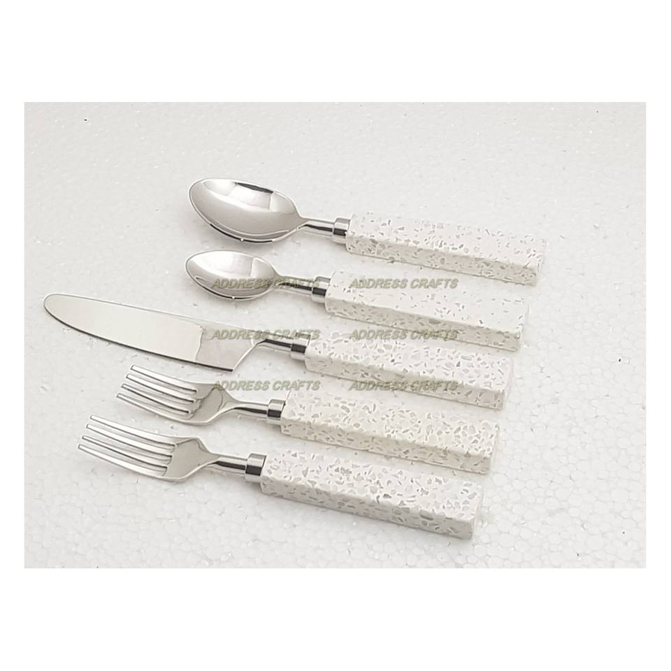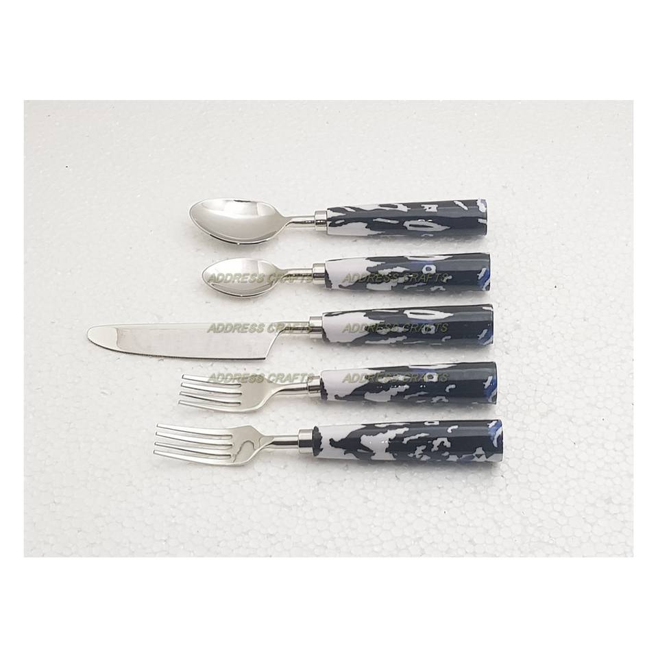 ชุดช้อนส้อมสแตนเลสแบบอเมริกันพร้อมด้ามจับเรซิ่น ชุดเครื่องใช้บนโต๊ะอาหารสำหรับงานแต่งงาน ชุดช้อนส้อมมือสอง ชุดอาหารเย็น