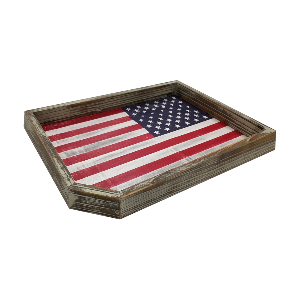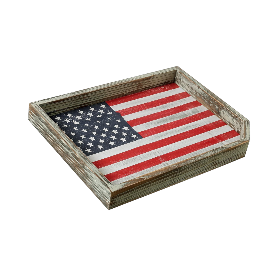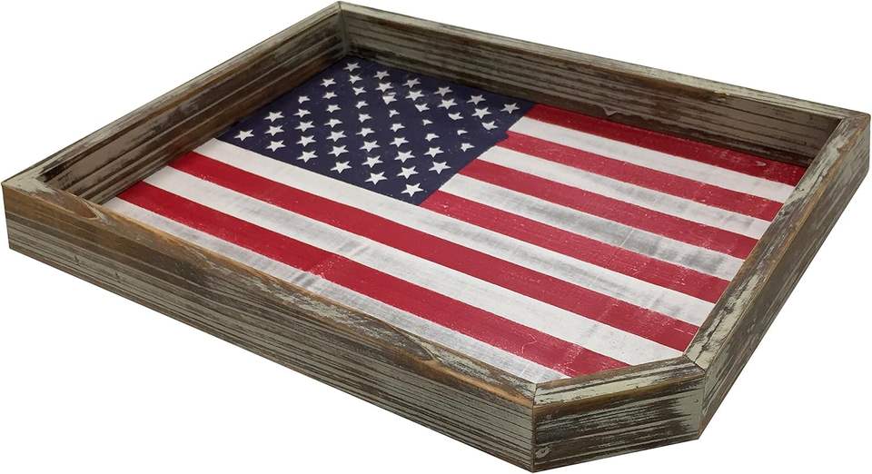 ถาดเสิร์ฟลายธงชาติแบบเป็นมิตรต่อสิ่งแวดล้อม ทำจากไม้เอ็มดีเอฟเคลือบแลคเกอร์ สำหรับงานเทศกาลอเมริกานาและงานเลี้ยงวันรำลึกและวันที่ 4 กรกฎาคม