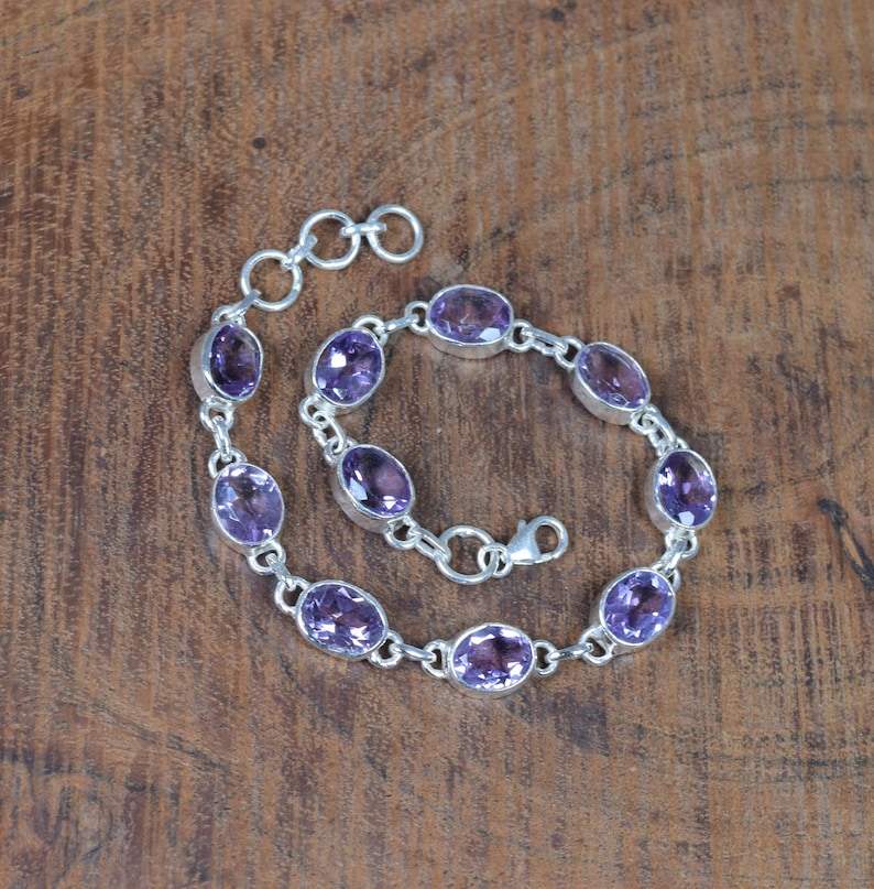กำไลเงินแท้ 925 ประดับพลอยอเมทิสต์ ปรับขนาดได้ พลอยประจำเดือนกุมภาพันธ์ ทำด้วยมือ ดีไซน์หรูหรา ไม่ซ้ำใคร ของขวัญสำหรับผู้หญิง
