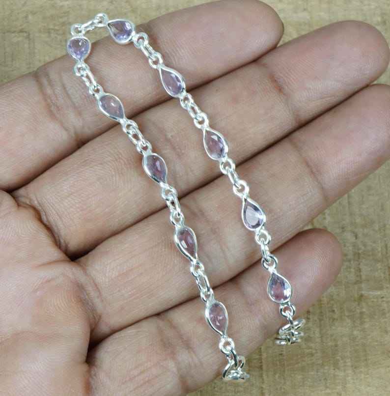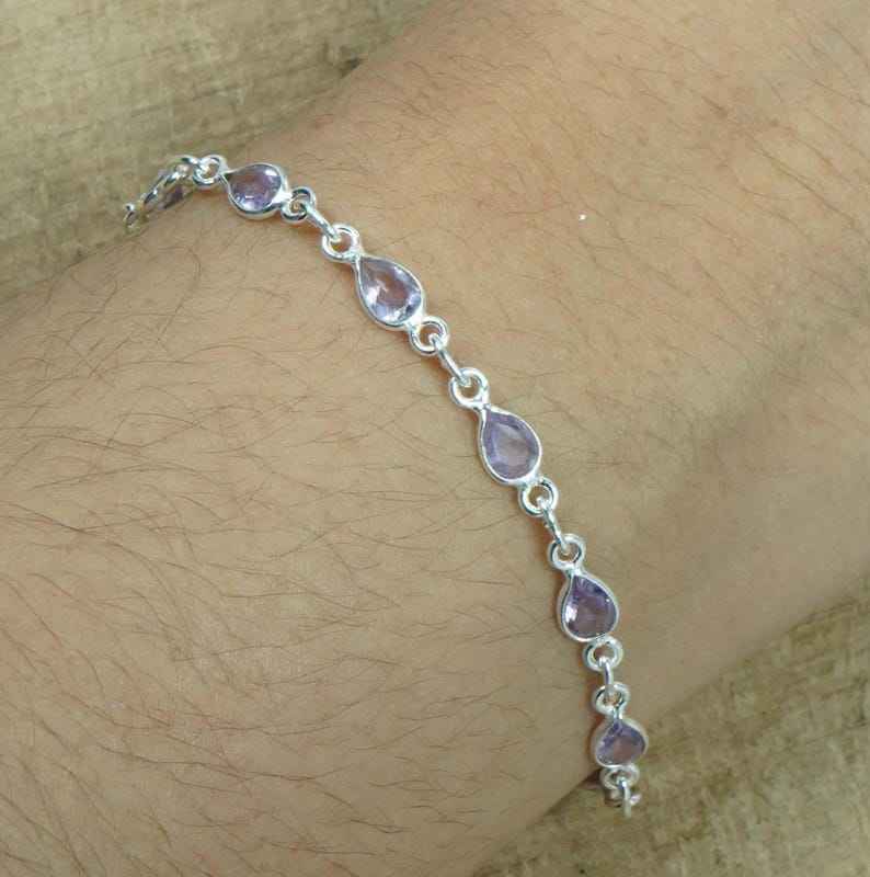 สร้อยข้อมืออเมทิสต์เรืองแสงประดับด้วยหิน