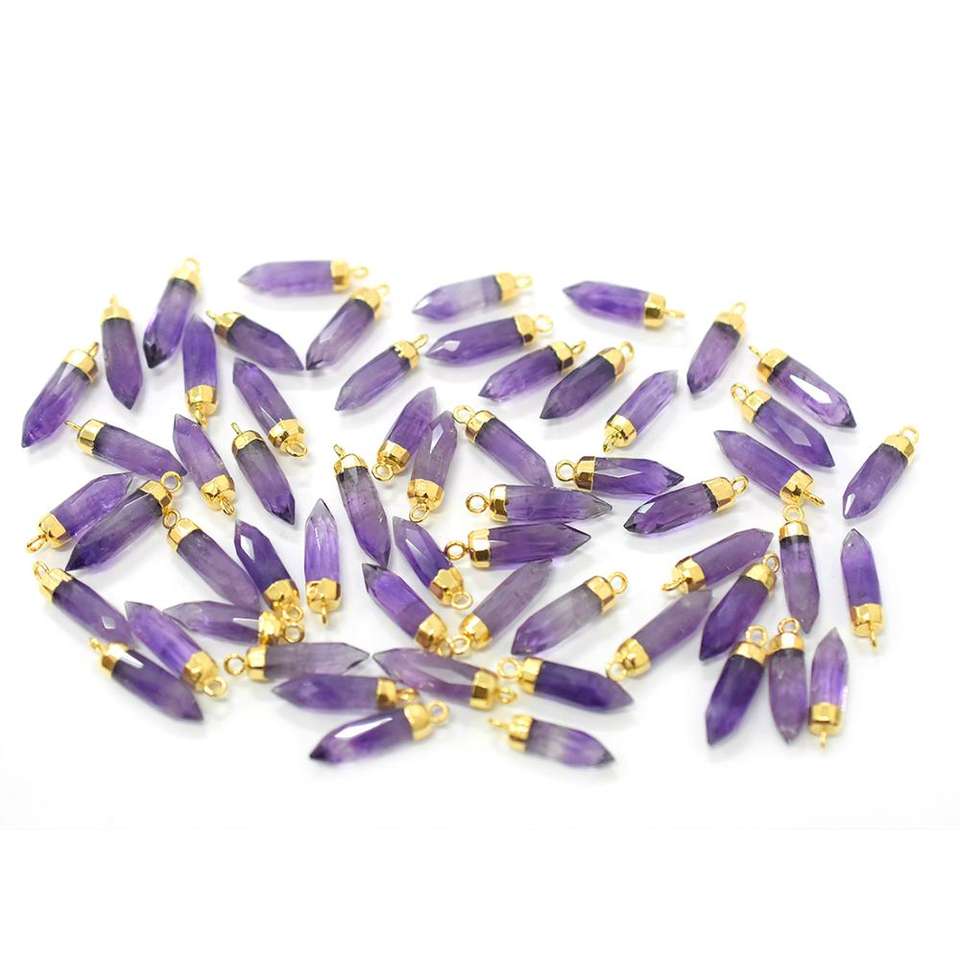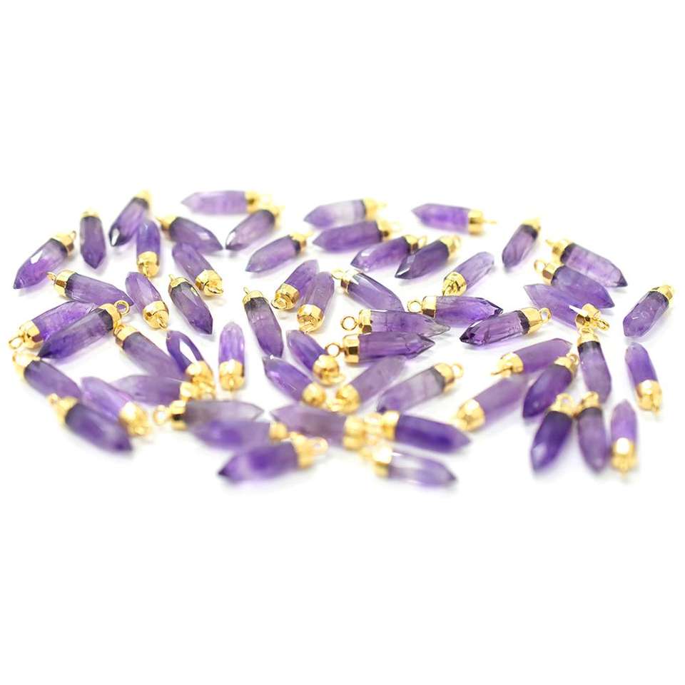 จี้ชุบทองทรงแหลมใหญ่อะเมทิสต์