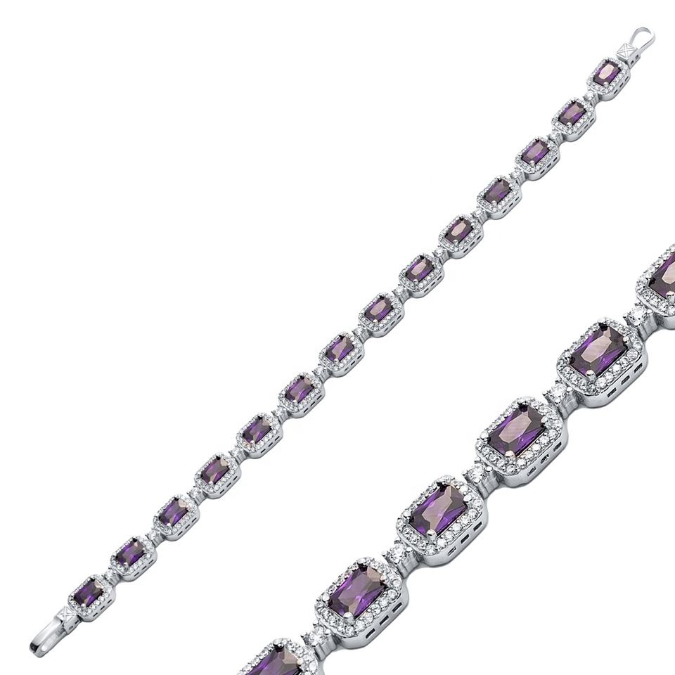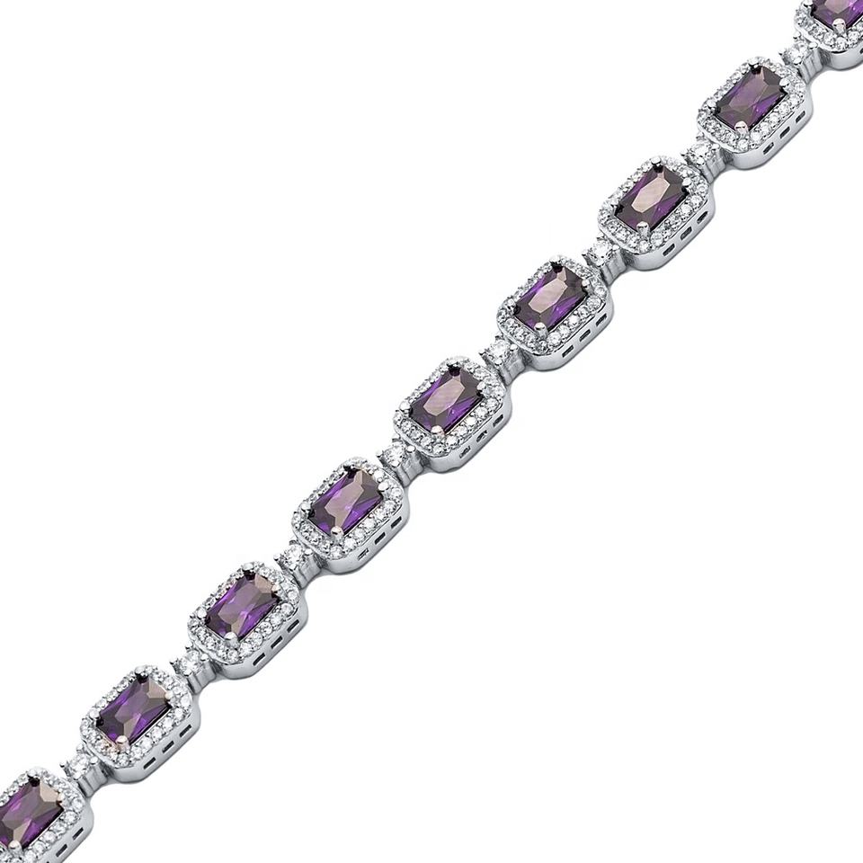 สร้อยข้อมือเทนนิสอเมทิสต์หิน CZ ทรงสี่เหลี่ยมทันสมัยเครื่องประดับเงิน925ขายส่ง