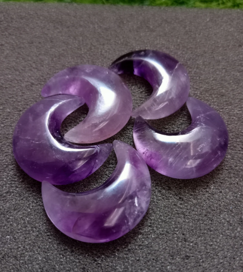 พลอยอเมทิสต์คริสตัลรูปดวงจันทร์ทรงพระจันทร์เสี้ยวทรงหลวมอัญมณีแกะสลักด้วยมือของขวัญจากหินบำบัด