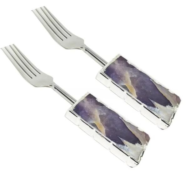 ส้อมช้อนรับประทานอาหารเย็นอเมทิสต์เครื่องใช้ในครัวทำจากหินคริสตัลส้อมโลหะ