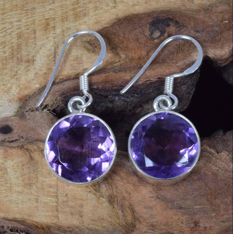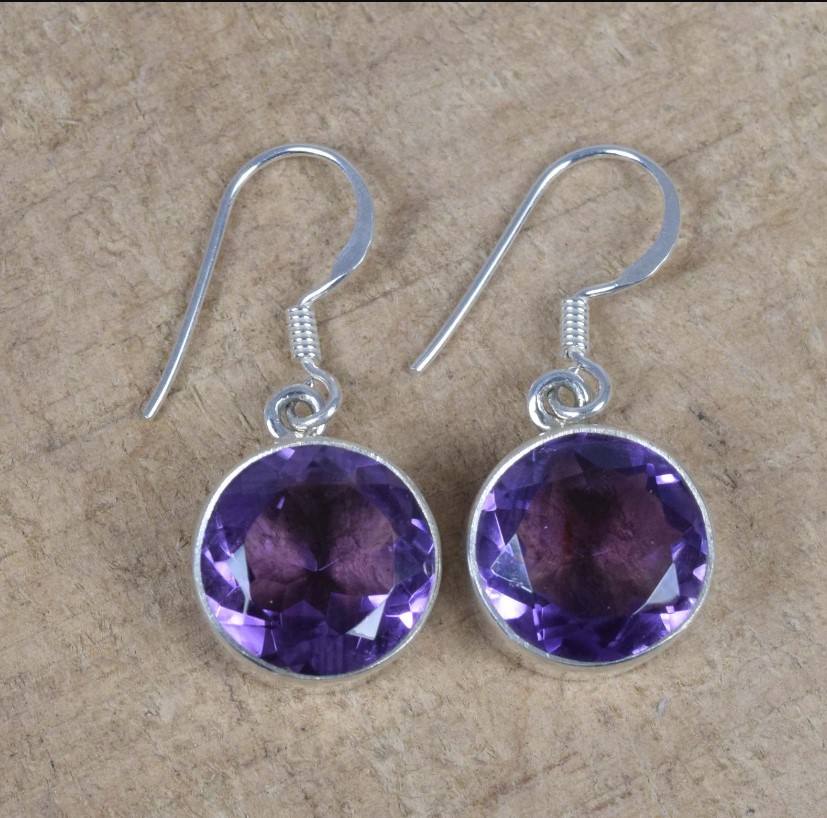ชื่อผลิตภัณฑ์:ต่างหูเงินพลอยอเมทิสตัดตามธรรมชาติ