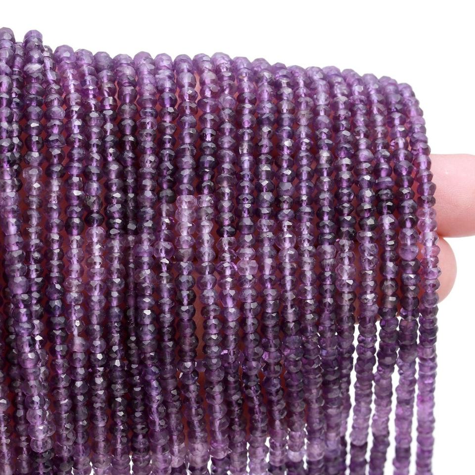 ลูกปัดอเมทิสต์แอฟริกัน เจียระไนเหลี่ยมทรงรอนเดลไล่เฉดสี