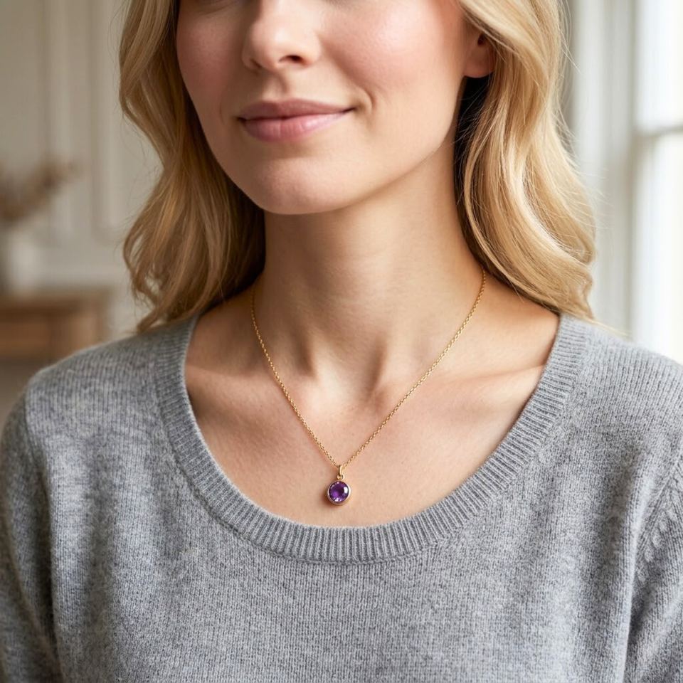 Amethyst Round Shape Sterling Silver Gold Plated Pendant