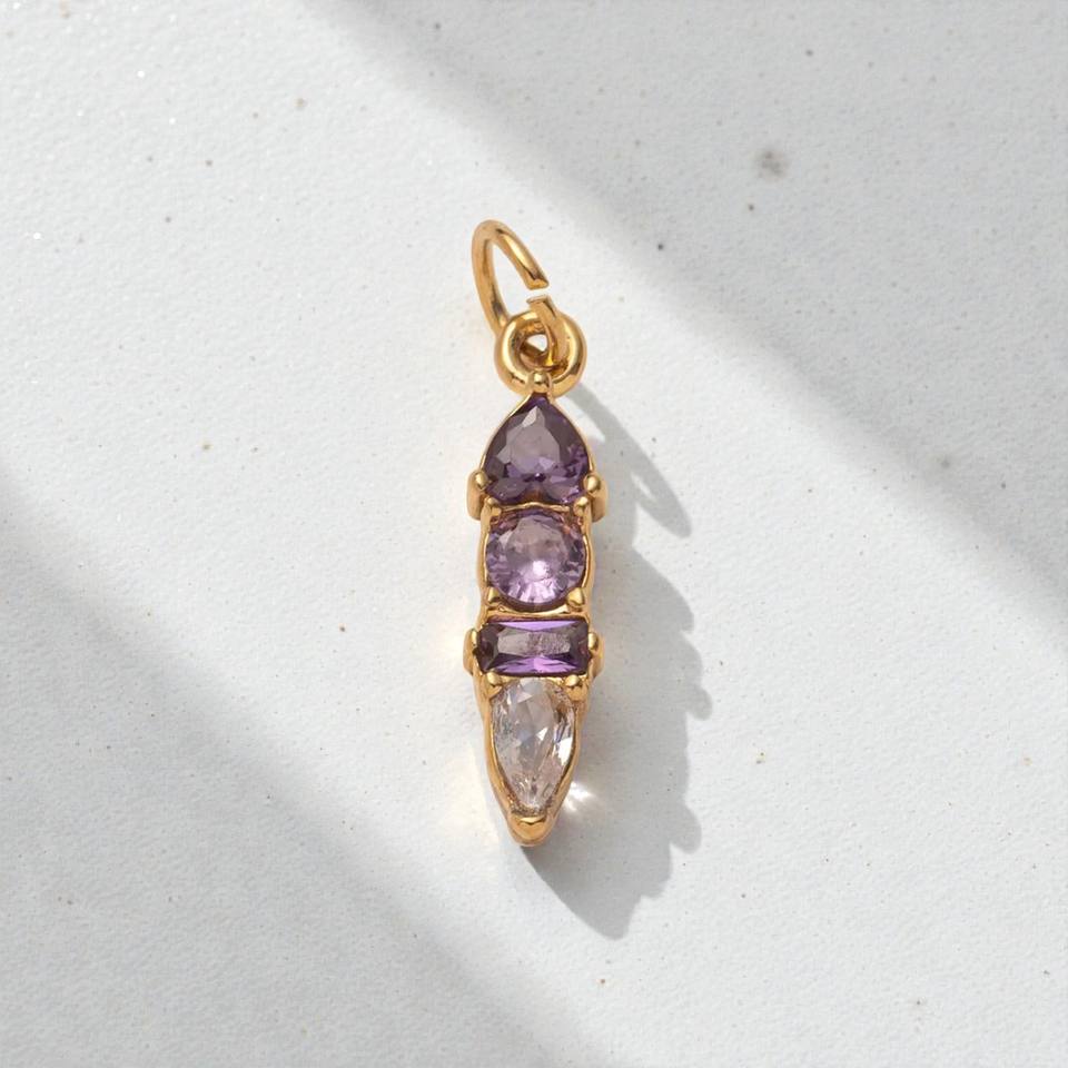 จี้ห้อยประดับอเมทิสต์ทรงบาแกตต์และทรงมิกซ์คัท | จี้เงินแท้ 925 ชุบทอง 14K สำหรับทำสร้อยคอและสร้อยข้อมือ